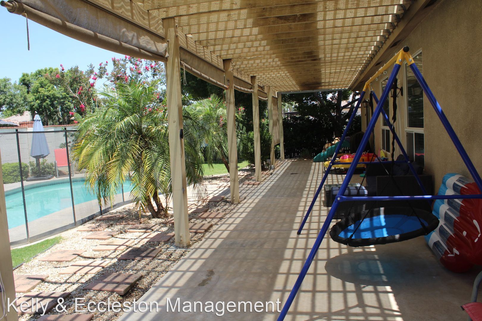 Poolside home with great schools! **BY APPOINTMENT** - Poolside home with great schools! Backyard pool, pet friendly, 3 bed + office, 2 bath home with a family room and separate dining room corner lot in the desirable neighborhood of Seven Oaks West! This quiet neighborhood in a highly sought-after school district will not last long. With a 3 car garage, there's enough room for your vehicles AND storage. Each square foot of the home has brand new beautiful vinyl planks and carpeting. Cool down on the hot Bakersfield days by taking a dip in your backyard pool. Don't forget to bring your pets! We understand that pets are part of our lives, and this is a pet friendly home. Windermere Park is within walking distance, and your new home is close to shopping and schools. Landlord covers trash, sewage, HOA, gardening and pool maintenance. Tenant covers electricity, gas and water. Home is located in an area that qualifies for free* Spectrum Internet (*upon activation and request from Spectrum, as long as the program lasts). Tenant has the option for monthly security monitoring directly from a local security company for an additional $10/month. Monthly rent is $2900 with a $2900 deposit and a 12-month lease. Pets require a $300 deposit/each. This home won't last long. Submit your application today! **APPLICATION REQUIREMENT** 1. Applicants must have verifiable, total gross income of 3 times the amount of the rent to qualify. 2. Must have good credit. A minimum of a 550 FICO credit score. We do run credit checks that will show all collections, judgments, tax liens, bankruptcies, evictions, and any past due invoices or landlord debt in addition to background check. 3. You must have at least 2 yrs. of verifiable rental history with a landlord other than friend or family member. 4. You must be at your job a minimum of six months or in the same line of work or field, with proof of income: (2) months of paystubs will be required. **PLEASE APPLY AT EAMANAGERS.NET FIRST BEFORE SCHEDULING A VIEWING. APPLICATION FEE'S ARE $45 PER APPLICATION FOR ANYONE OVER THE AGE OF 18 YEARS OF AGE.** *Further information, please call our office "Kelly & Eccleston Management" located at 5555 California Ave Suite 200, Bakersfield, CA 93309 (661) 322-5936.