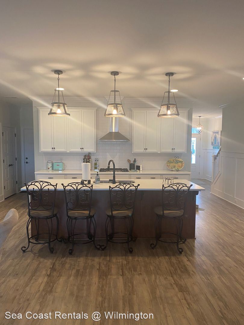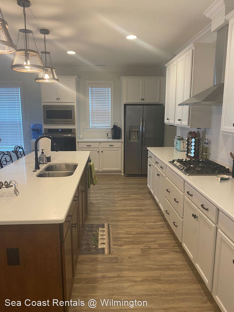 Beautifully decorated fully furnished 5 bedroom 3.5 bath home located in River Lights . - Beautifully decorated fully furnished 5 bedroom 3.5 bath home located in River Lights . Downstairs master bedroom is complete with oversized closet and ensuite master bathroom . Two additional bedrooms and 1.5 bathrooms downstairs . Upstairs there is a open family loft area with bonus room and 2 bedrooms with full bath . Kitchen is equipped with stainless steele appliances and island . Open living room has double slider doors which lead to enclosed patio space . 2 car garage attached. Pets Negotiable No Smoking Application Fees Apply Williams Elementary Williston Middle New Hanover High