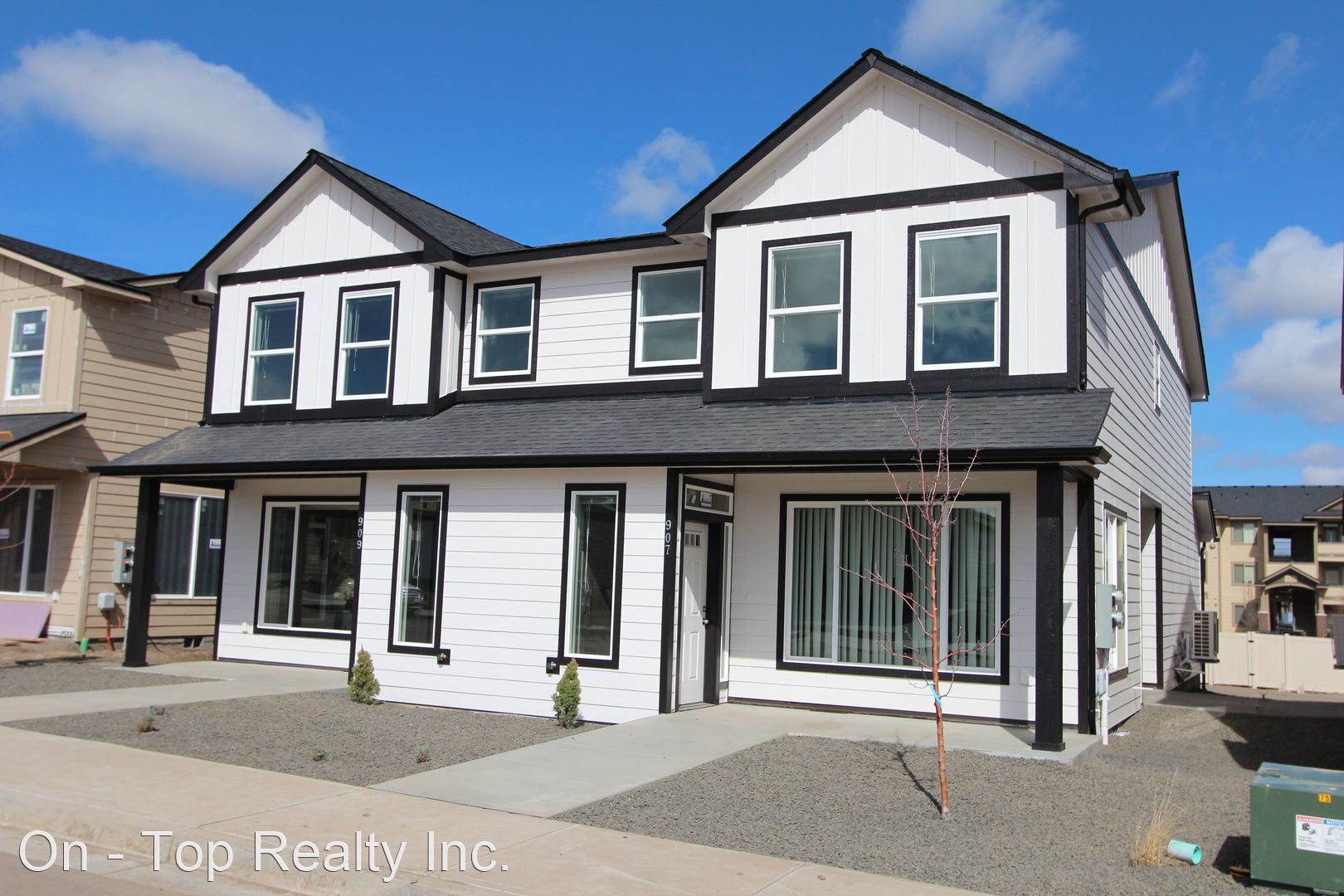 Modern design 3-bed, 2.5-bath duplex - Beautiful, modern design duplexes located in the Golden Hills neighborhood in Cheney. Great spacious floorplan with all 3 bedrooms upstairs. Master suite has two walk-in closets and a spacious master bathroom with double sinks. Stack washer/dryer conveniently located on the upper level near bedrooms. Beautiful kitchen with stainless steel appliances including fridge, stove/oven, dishwasher and microwave. The kitchen counters and island are quartz. The unit has 3 hi-efficiency mini split air conditioner/heaters with remotes. Two car attached garage with remote, low maintenance yard. Cat & small dog (under 30lbs.) negotiable with additional fees/pet rent. No large dogs please $50 per month utility reimbursement fee for sewer/water/HOA fees. Please visit our website at www.on-toprealty.com for our screening criteria. On-Top Realty Inc. does not accept comprehensive reusable tenant screening reports. No Smoking